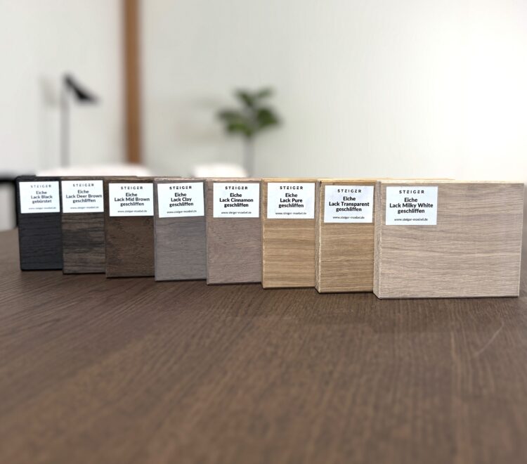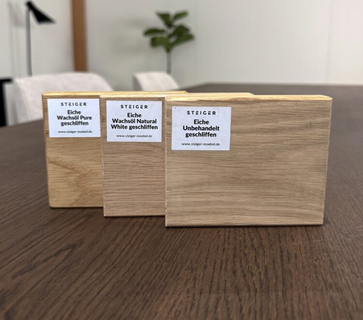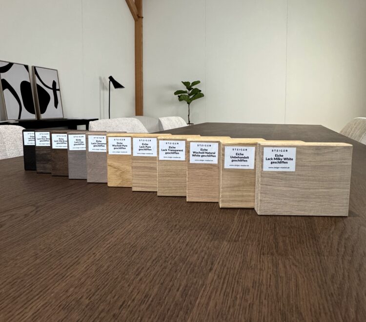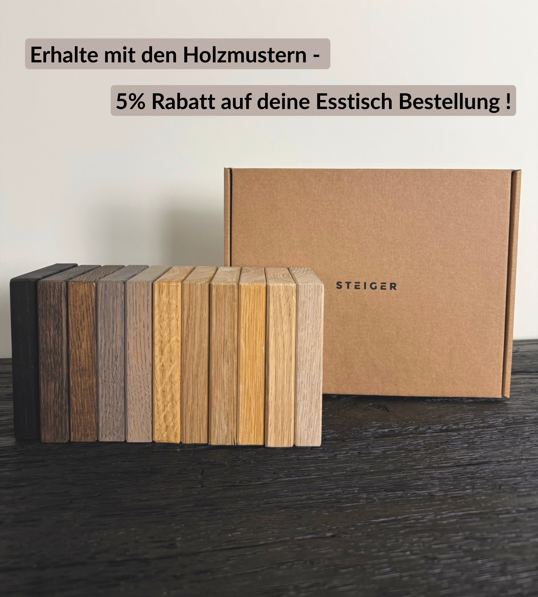 Bestelle dir bis zu vier Holzmuster nach Hause und erhalte zusätzliche 5% Rabatt für deine Esstisch Bestellung.