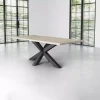 Steiger Esstisch Eiche Baumkante 200×100 Lack Milky White mit Metallgestell Matrix in anthrazit