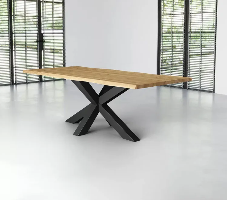Steiger Esstisch Eiche Baumkante 240×100 Pure mit Metallgestell Matrix in schwarz