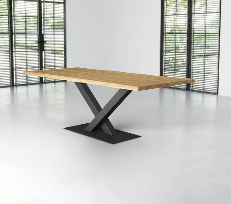 Steiger Esstisch Eiche Baumkante 240×100 Pure mit Metallgestell V in anthrazit