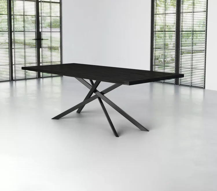 Steiger Esstisch Eiche Gerade Kante 200×100 Schwarz mit Metallgestell Mikado in schwarz