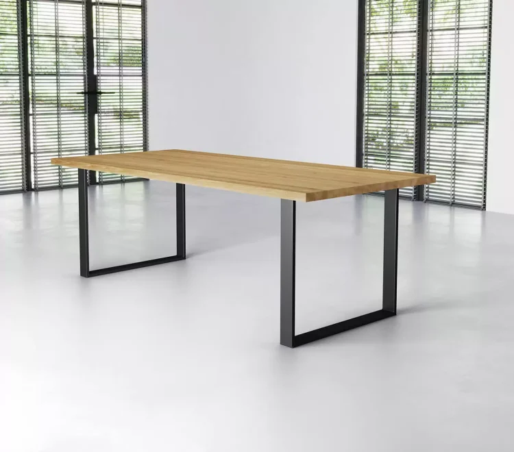 Steiger Esstisch Eiche Gerade Kante 240×100 Pure mit Metallgestell U light in schwarz
