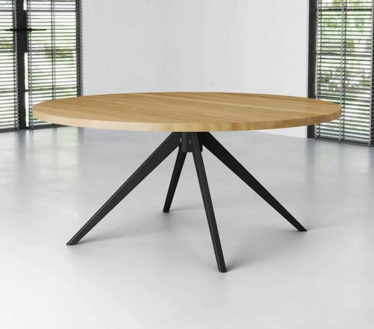 Esstisch Eiche rund 180 cm – Massivholz trifft modernes Spin-Gestell