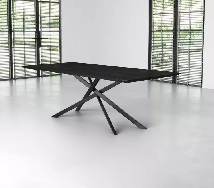 Steiger Esstisch Eiche Schweizer Kante 200×100 Schwarz mit Metallgestell Mikado in schwarz