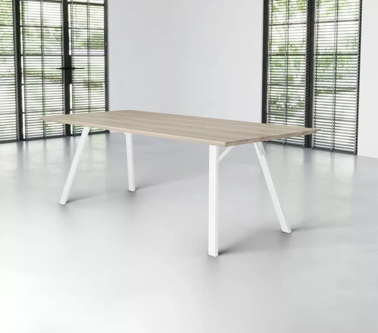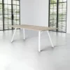 Steiger Esstisch Eiche Schweizer Kante 220×100 Lack Milky White mit Metallgestell A light in weiß