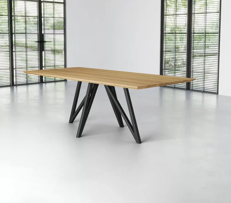 Steiger Esstisch Eiche Schweizer Kante 240×100 Pure mit Metallgestell Star in schwarz