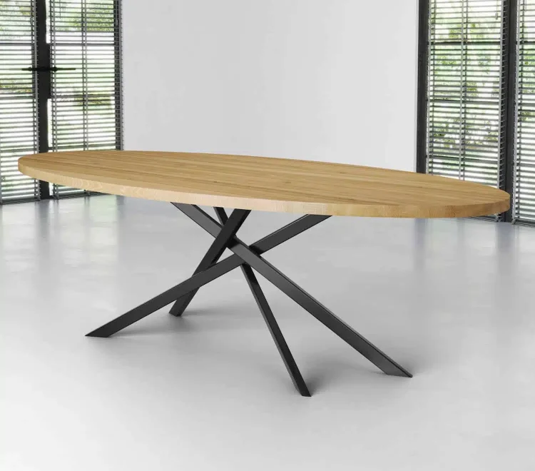 Esstisch Oval 240 x 120 cm Eiche – Massivholz trifft Mikado-Gestell