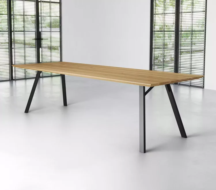 Steiger Esstisch Schweizer Kante 260×100 Pure mit Metallgestell A light in schwarz